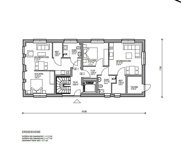 Der Baubeginn dieser Gewerbeimmobilie ist für Februar dieses Jahres vorgesehen, mit einer geplanten Fertigstellung im Dezember 2025. Die Einheiten verfügen über Wohnflächen von 34 m² bis 50 m² und sind ideal für gewerbliche Zwecke wie Ferienvermietung, temporäres Wohnen oder die Nutzung als Airbnb-Unterkünfte geeignet.Die sechs Wohnungen bestehen jeweils aus zwei Zimmern, einem Flur, einem Badezimmer und einem Abstellraum. Bei Bedarf können zwei Wohnungen problemlos zu einer größeren Einheit zusammengelegt werden.