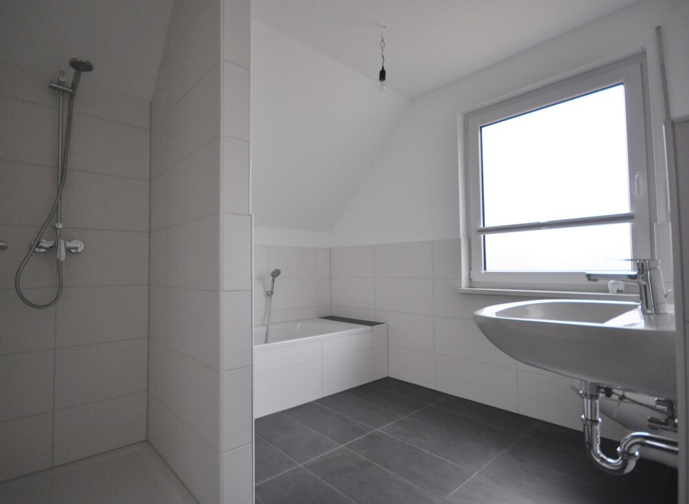 Im Obergeschoss befinden sich vier Schlafräume und das Tageslichtbad mit Dusche und Wanne. Auch hier sind alle Räume durch einen Flur getrennt.