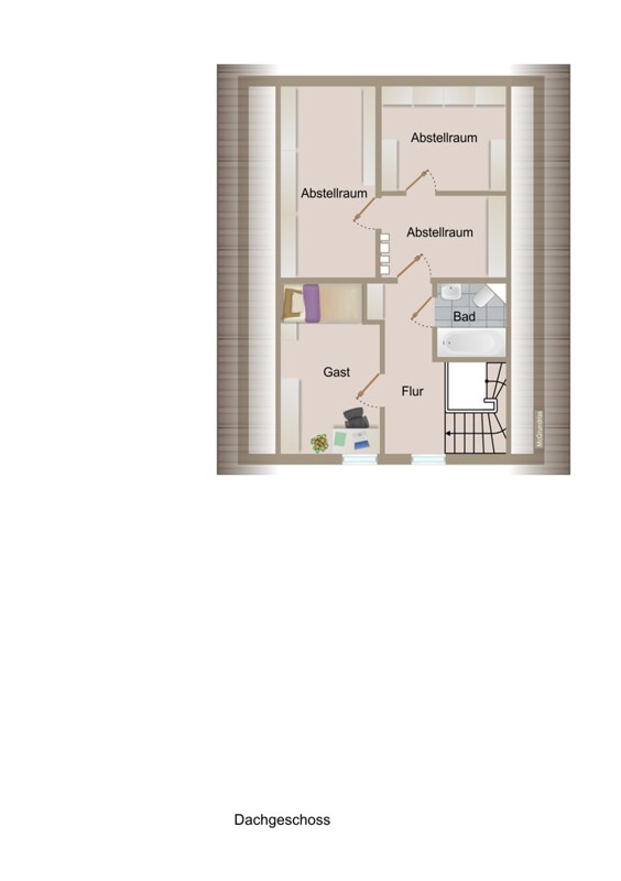 Im Dachgeschoss gibt es ein Gästezimmer mit einem weiteren Badezimmer. Zudem stehen hier noch drei weitere Zimmer zur Verfügung.