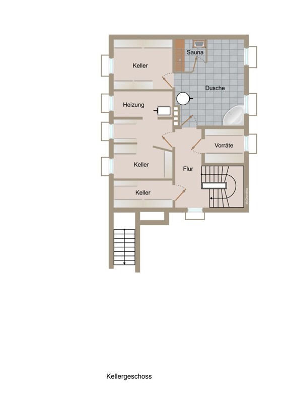 Im Kellergeschoss erwarten Sie neben dem Heizungsraum vier weitere unterschiedlich große Räume. In einem dieser Räume ist eine Sauna mit Duschmöglichkeit untergebracht. Hier also auch viel Platz für eine Werkstatt, einen Fitness- oder Partyraum oder als Abstellfläche.