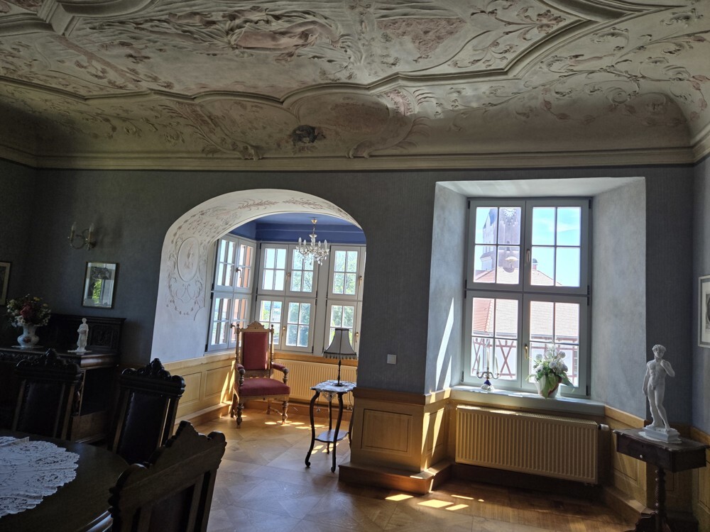 Die wertvollen Stuckdecken sind eine herausragende Arbeit aus dem 16 . und 17. Jahrhundert in Sachsen. Durch die familiäre und freundschaftliche Verbundenheit nach Dresden finden sich diese Art von Stuckdecken ebenso im grünen Gewölbe in Dresden wieder.