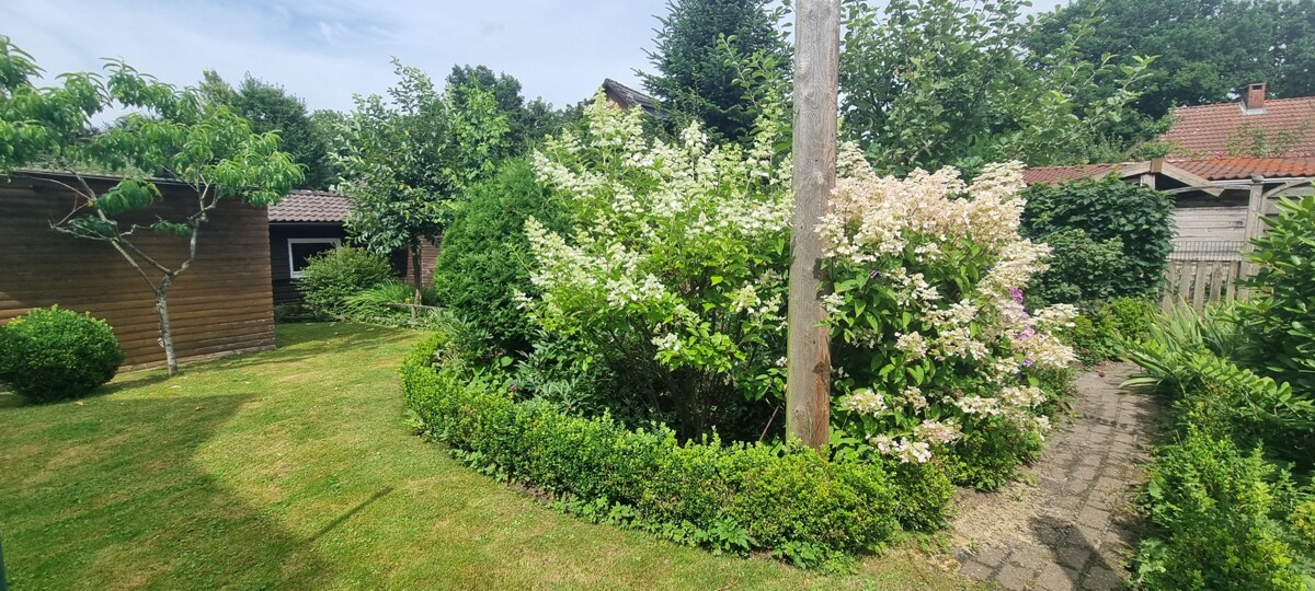 Auf der Terrasse, welche ebenso von der Diele aus begehbar ist, lässt sich die frische Luft genießen und Grillabende werden zu einem tollen Erlebnis. Der liebevoll angelegte Garten ist ein weiteres unvergleichliches Detail.