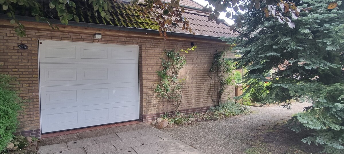 Ihre Fahrzeuge lassen sich in einer Garage mit elektrischem Tor und auf einem Freistellplatz unterbringen. Die Garage bietet einen weitere kleinen Abstellraum für Fahrräder etc.