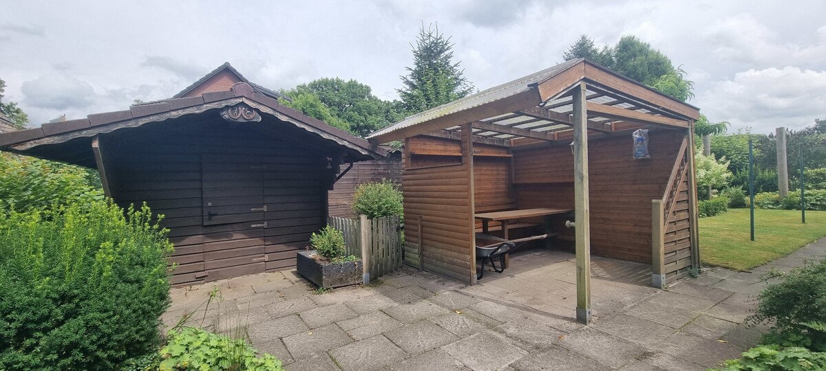 Das Haus verfügt über zwei Schuppen aus 1992 für Gartengeräte und Holzlagerung (einer davon ein ehemaliger Hühnerstall).