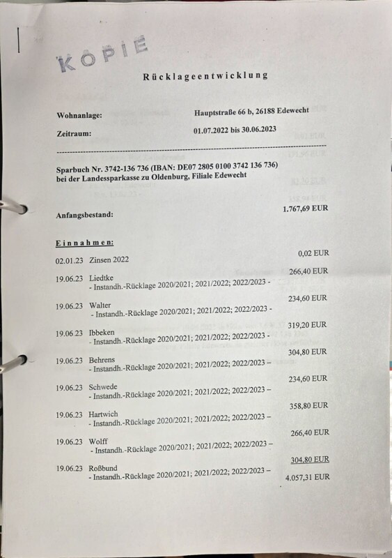 Das jährliche Hausgeld liegt derzeit nach wie vor bei ca. 160 € pro Monat zzgl. eventuell anfallender Instandhaltungsrücklage.