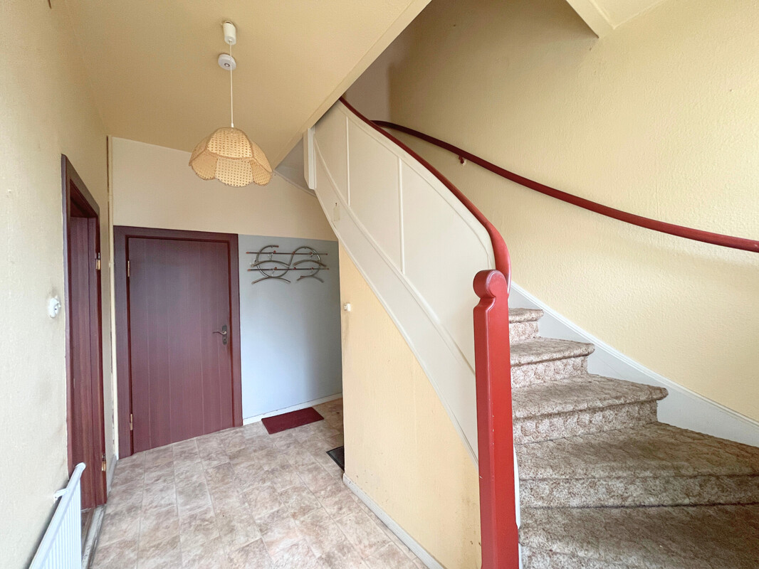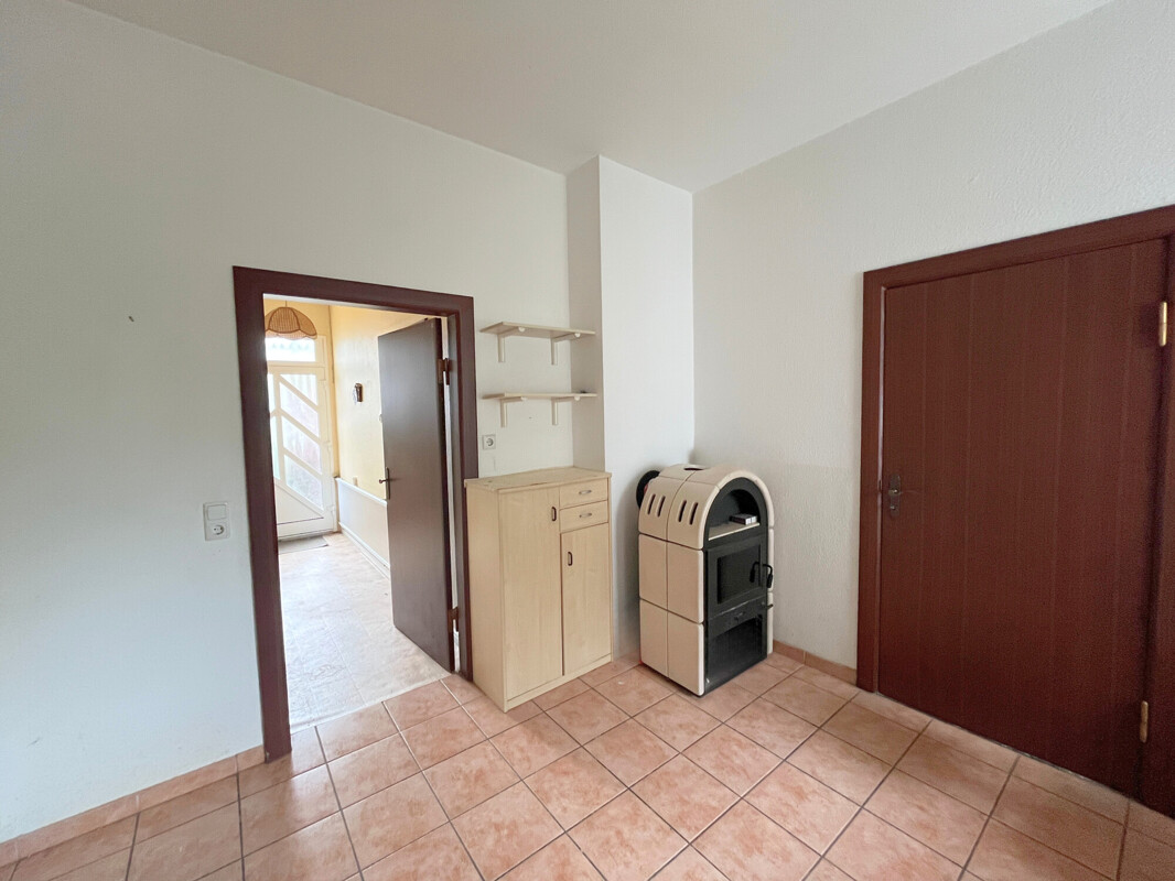 Beim Betreten der Immobilie gelangen Sie zunächst in den Flur. Von hier aus führt der Weg links in das Wohnzimmer, das durch seine Größe vielfältige Einrichtungsmöglichkeiten bietet. Geradeaus erreichen Sie die Küche mit vorhandener Einbauküche, die im Kaufpreis enthalten ist. Zudem gelangen Sie vom Flur direkt in den Keller, der sowohl Stauraum als auch die Ölheizung beherbergt.An die Küche schließt sich ein weiteres Zimmer an, das aktuell als Schlafzimmer im Erdgeschoss genutzt werden kann. Dadurch ist ein sofortiger Einzug möglich, während die Räume im Obergeschoss nach und nach renoviert werden können. Später lässt sich dieser Raum flexibel wieder als Esszimmer nutzen. Ursprünglich bestand auch ein Durchgang vom Wohnzimmer in diesen Bereich, der zwischenzeitlich durch ein Regal verschlossen wurde. Mit wenig Aufwand kann dieser Zugang wieder geöffnet werden, sodass Wohnzimmer, Küche und Essbereich erneut miteinander verbunden werden können.